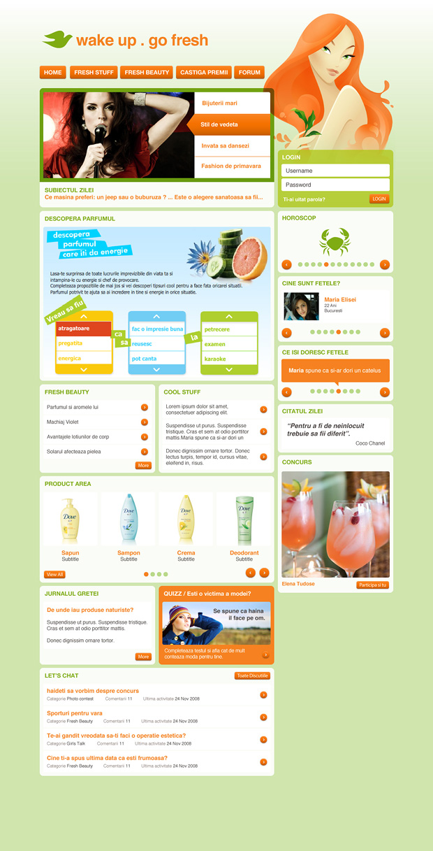 Go Fresh is a product awareness microsite that features articles and news related to the Dove Go Fresh product line.